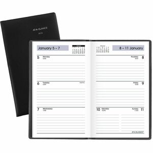At-A-Glance DayMinder Weekly Pocket Planner - Yes - Weekly - 1 Year - January 2019 till December 2019 - 1 Week Double Page Layout - 3 1/2" x 6 3/16" - Paper - Black - Non-refillable